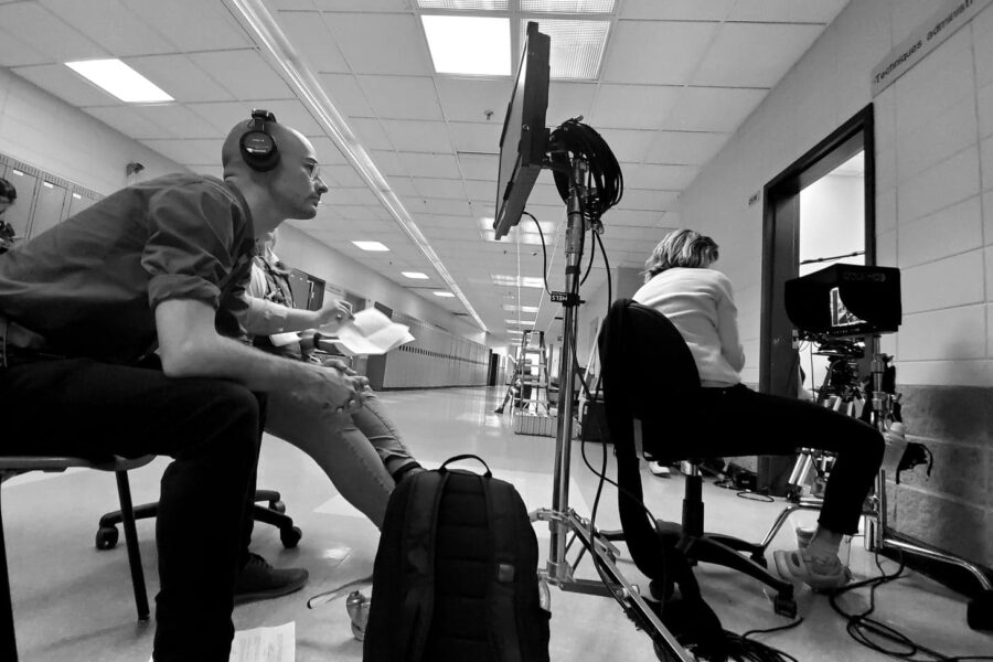 Le professeur a fait vivre une expérience passionnante à une trentaine d’étudiants des programmes Arts, lettres et communication, option Cinéma et option Littérature, théâtre et création du Cégep de Lévis. Ils ont participé au tournage avec Alexandre et Eve Landry. Certains d’entre eux ont déjà hâte de recommencer!
