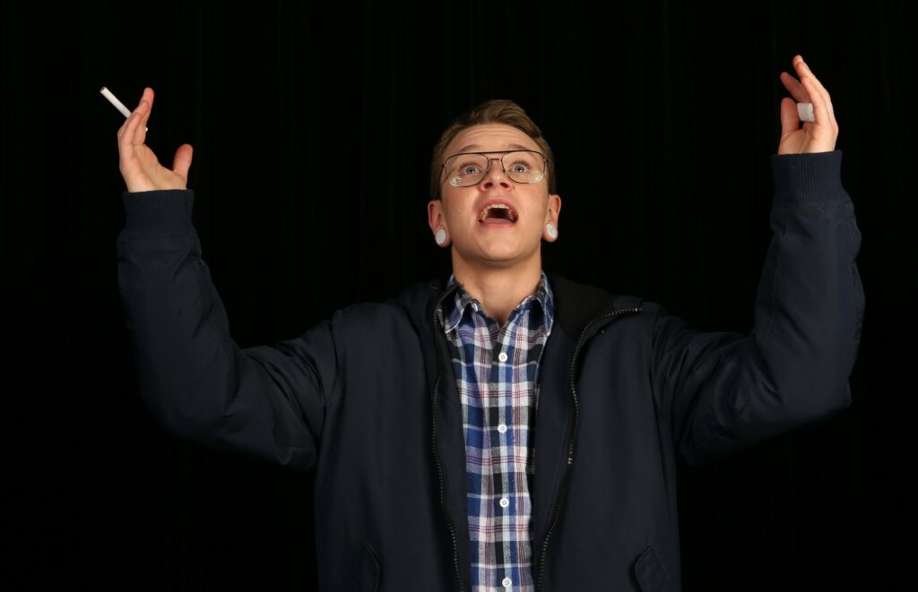 Cette année, le prix du public offert par l’Association des cadres a été remplacé par le prix de l’interprétation. Léopold Morneau, étudiant en Littérature, théâtre et création, l’a gagné pour sa présentation d’un numéro théâtral, une mise en scène d’un texte d’Étienne Lepage.