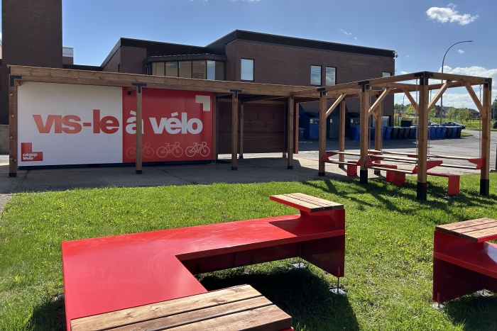 Nous venons d’inaugurer la Station vélo Desjardins, un nouvel espace de vie extérieur pour encourager notre communauté collégiale et les Lévisiens à utiliser des modes de transport actif pour se déplacer. L’aménagement de la Station vélo Desjardins, qui comprend un abri pour des vélos et des aires de repos, a nécessité un investissement de 75 000 $. Le projet a été réalisé grâce à la Fondation du cégep et à ses partenaires : la Caisse Desjardins de Lévis, la Ville de Lévis (Fonds vert), l’Association des retraités, l’Association de parents et l’Association étudiante.