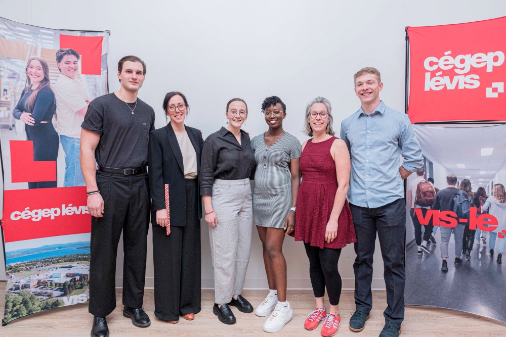 Les quatre panélistes étaient accompagnés d’Isabelle Dionne, coordonnatrice du Bureau de l’international du cégep, et d’Annie Demers-Caron, professeure d’anthropologie et partie prenante du comité local du Programme d’étudiantes et d’étudiants réfugiés.