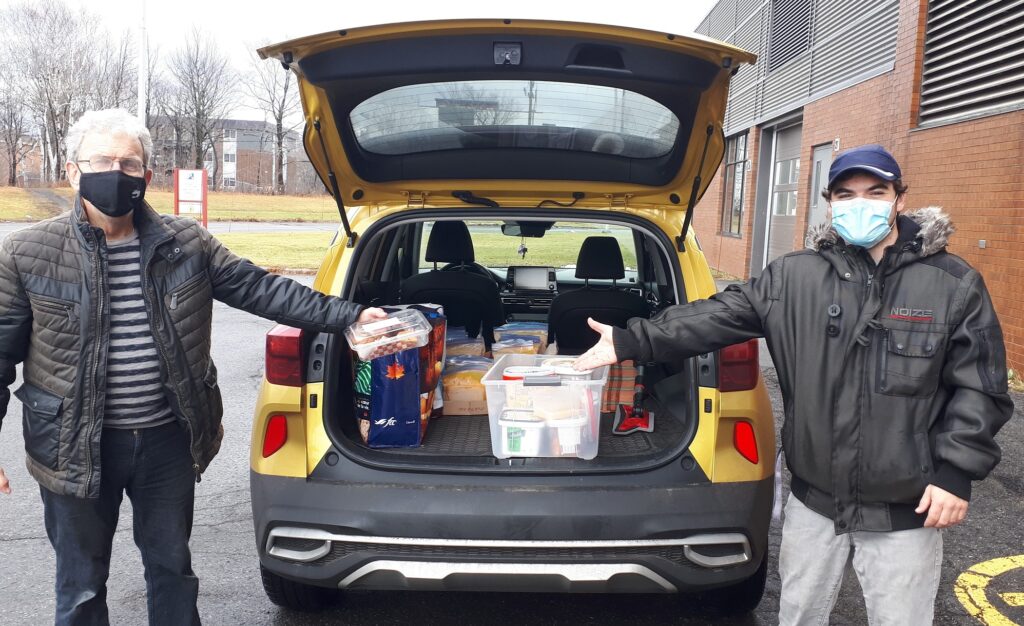 Un bénévole du Centre de pédiatrie, monsieur Yves Bilodeau, est venu au cégep pour récupérer les denrées. Marc-Antoine Boutin, qui en est à sa troisième année en Gestion et technologies d’entreprise agricole, était sur place pour l’accueillir. Marc-Antoine faisait partie de l’équipe responsable de la culture des citrouilles.