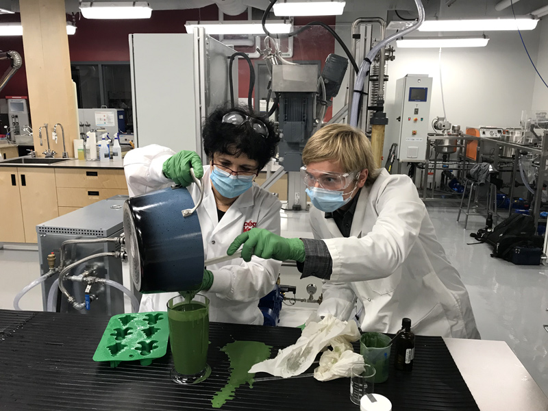 Cette année, de nouveaux produits seront offerts, notamment grâce à la collaboration de Carmen Tibirna, coordonnatrice du  programme de Techniques de procédés industriels.  En effet, il y aura des savons fabriqués au cégep, dans nos laboratoires, à partir du lait de deux chèvres laitières élevées à la ferme-école. Les savons sentent bon. Ils sont bien emballés et feront de bien jolis présents sous le sapin.
