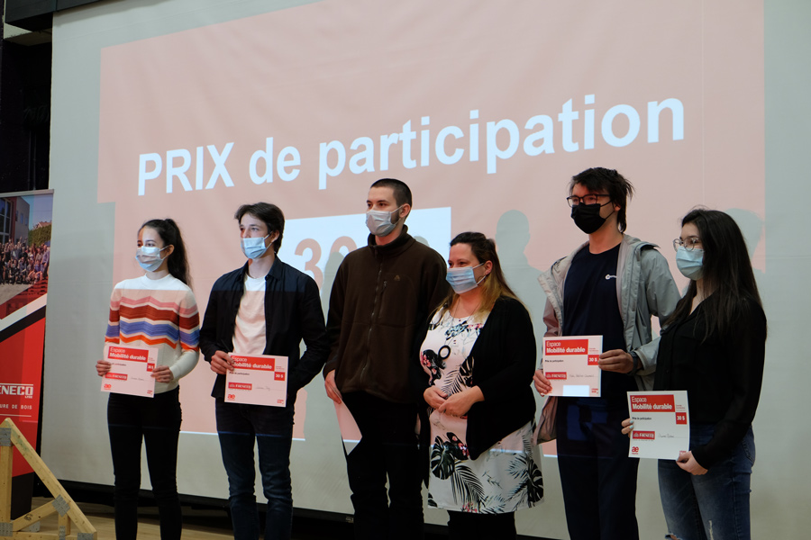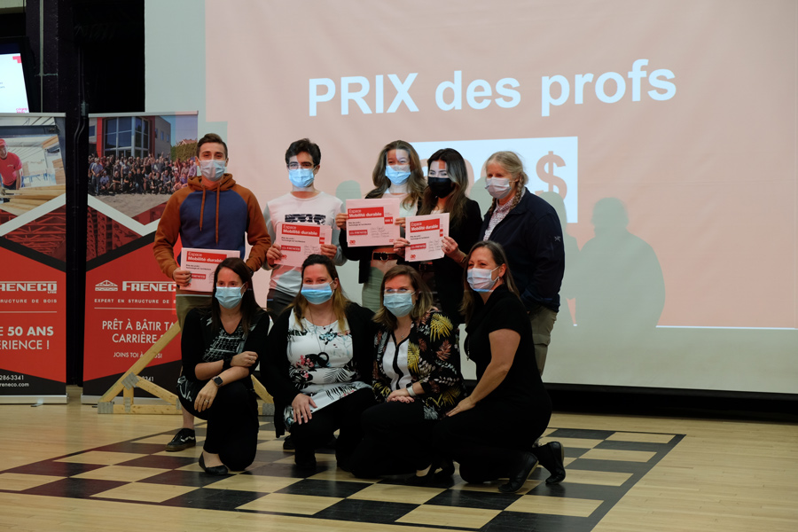 Près de 40 étudiants en Technologie de l’architecture ont profité de la semaine de lecture pour mettre leurs connaissances en pratique. Ils ont participé à un concours organisé par les professeurs de leur département et la responsable du développement durable au cégep, Éléonore Aubin. En équipe, ils ont eu moins de 48 h pour imaginer un espace de mobilité durable qui pourrait éventuellement voir le jour sur le campus.