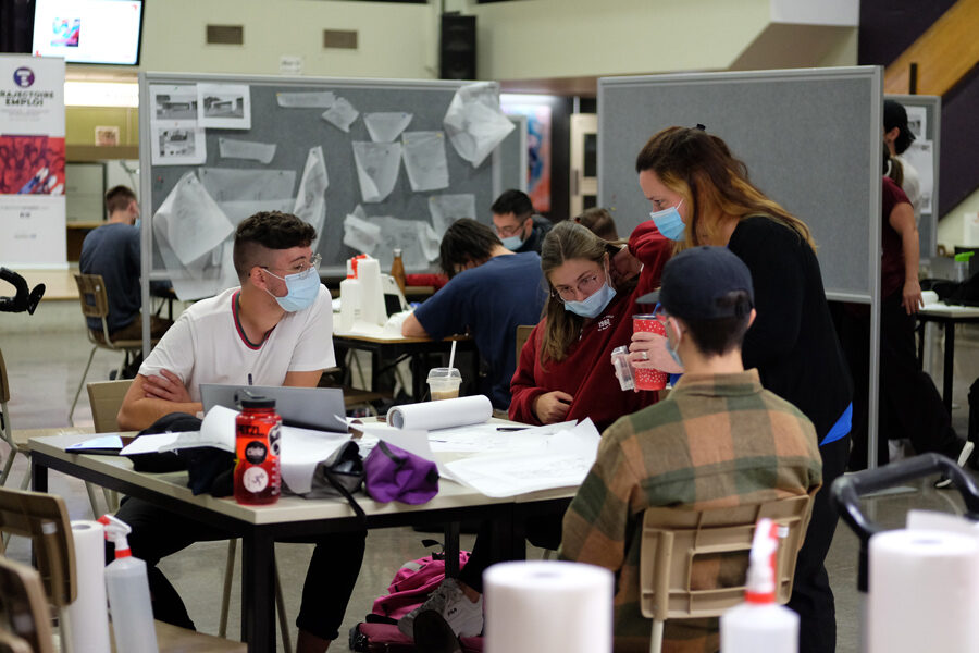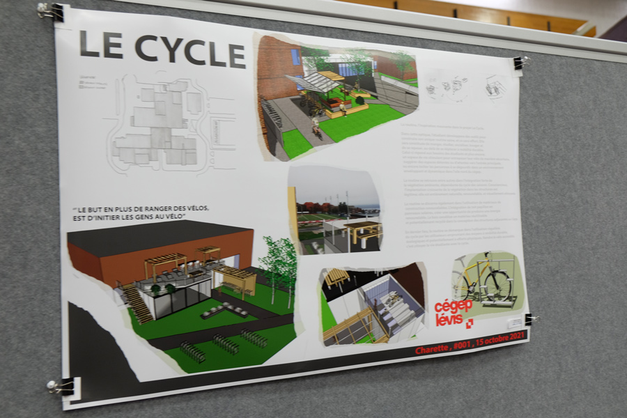 Près de 40 étudiants en Technologie de l’architecture ont profité de la semaine de lecture pour mettre leurs connaissances en pratique. Ils ont participé à un concours organisé par les professeurs de leur département et la responsable du développement durable au cégep, Éléonore Aubin. En équipe, ils ont eu moins de 48 h pour imaginer un espace de mobilité durable qui pourrait éventuellement voir le jour sur le campus.